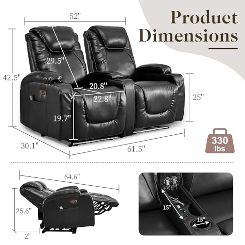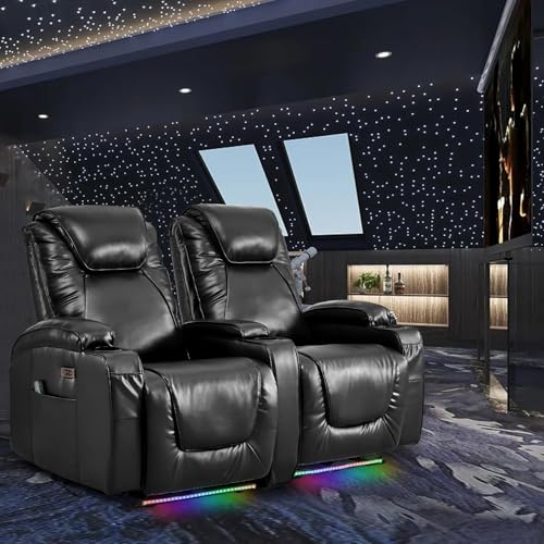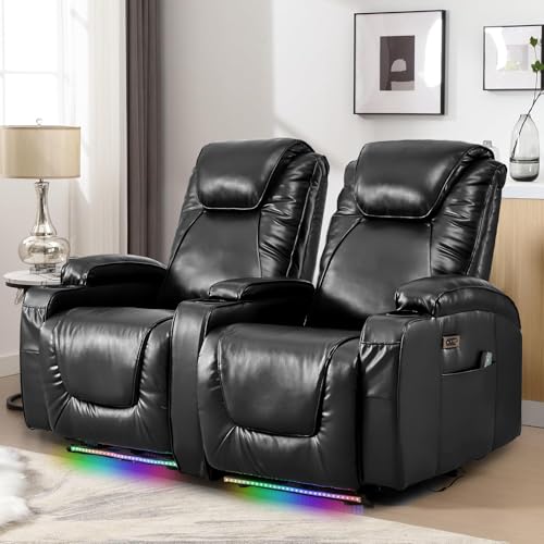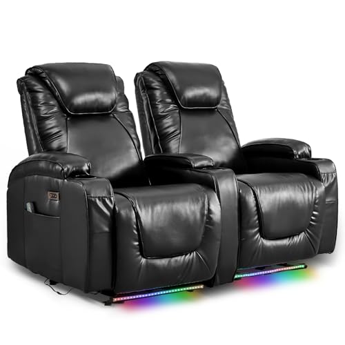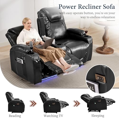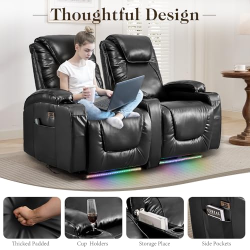 2-Seater Power Recliner Chair Loveseat Recliner Sofa Wall Hugger Recliners RV Home Theater Seating Reclining Chair w/LED Light/Charge Station/Cup Holders (Black) quantity