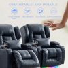 Electric Chair Recliner Home Theater Seating w/Heat Massage Breathable Leather Overstuffed Movie Gaming Sofa Reclining Chair w/LED Light/Lumbar Pillow/USB Port/Cup Holders/Pockets (1 PC, Blue)