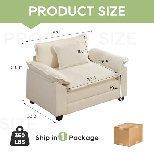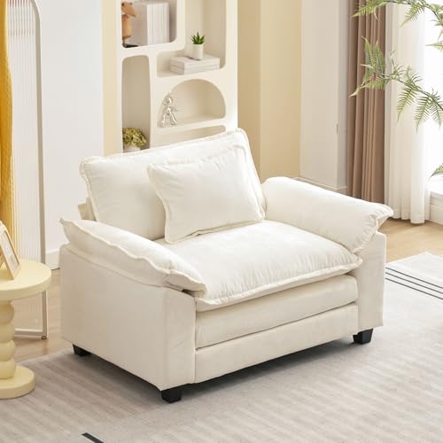 / Modular Sectional Sofa, Comfy Cloud Couch Sectional Sofa, Chenille Sofa Sleeper Deep Seat Sofa with Throw Pillows for Living Room (Beige White, 53"- Single Seat)